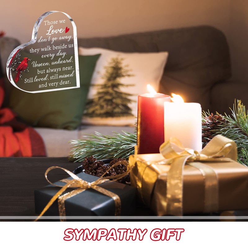 Blulu Blulu Memorial Gifts for Loss of Father Mother Red Cardinal Memorial Bereavement Acrylic Heart Condolence Sympathy Gifts in Memory of Loss of Loved One for Table Centerpieces Remembrance(4 x 4 Inch)