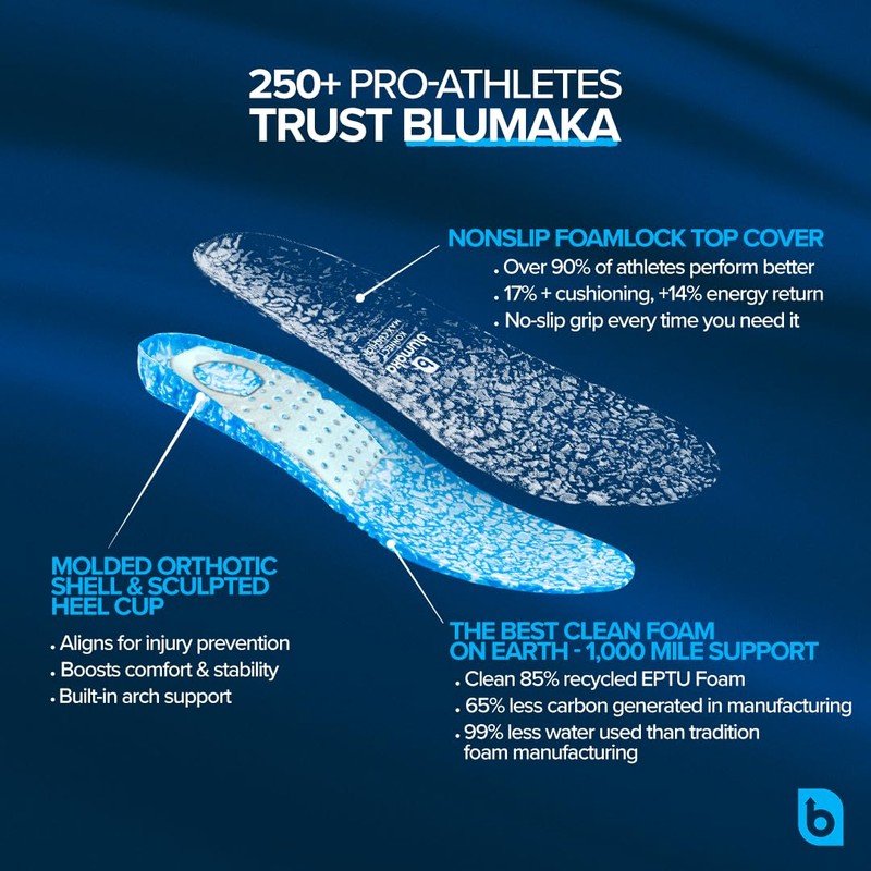Blumaka Non-Slip Athletic Insoles – High Cushion & Stability Sport Inserts – 93% of Pro Athletes Perform Better – Flat Feet & Plantar Fasciitis (High Arch Support, Men’s 9-9.5 | Women’s 10-10.5)