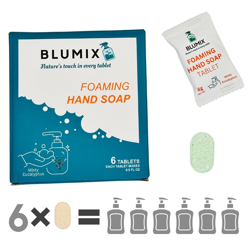 Blumix - Foaming Hand Soap Tablet Refill - 6 Pack - Eco-Friendly, Gentle Cleansing Foaming Tablets, Zero Waste Cleaning, Effective Cleaning, Just-Add-Water (Eucalyptus)