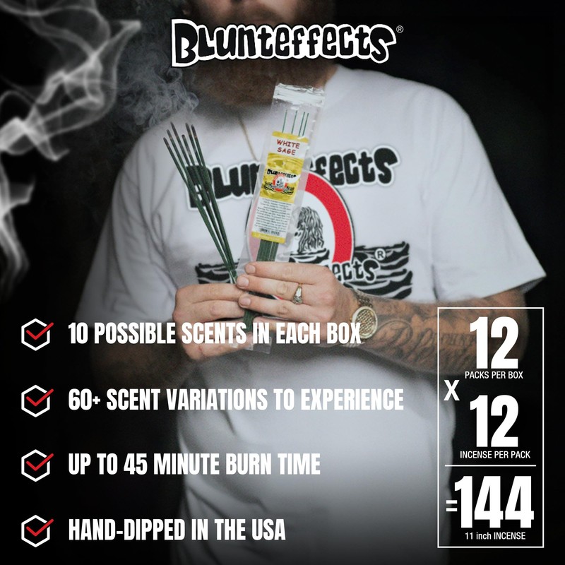 Blunteffects Hand-Dipped Incense Sticks - Premium 144-Pack Variety Set, 12 Different Scents, 11" Long, USA-Made Aromatherapy with Long Burn Time (12 Pack, 144 Total Sticks)