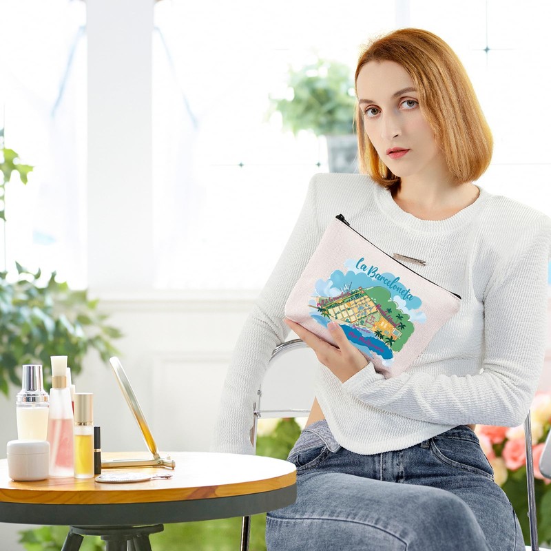 BLUPARK La Barceloneta Map Makeup Bag La Barceloneta Women Gift La Barceloneta Trip Toiletry Bag Moving to La Barceloneta Gift (La Barceloneta)
