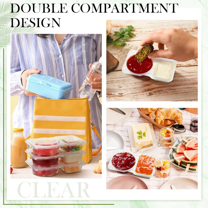 - Organizational Dividers: the set includes 50 2 compartment condiment containers, ideal to declutter your kitchen space; Featuring double compartments with a square compartment about 2 oz and a round compartment about 3 oz, these containers are ideal for keeping your condiments and ingredients neatly sorted