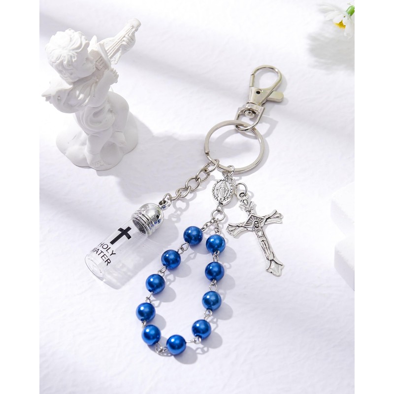- Convenient Spirituality Always at Hand: this holy water keychain coupled with a bead rosary ensures spiritual solace is never far from reach; Mini size fits conveniently in your pocket or purse, extending a lifeline of faith no matter where you may be; Incorporating robust materials, including metal, plastic, and glass, the result is a resilient piece that stands the test of time