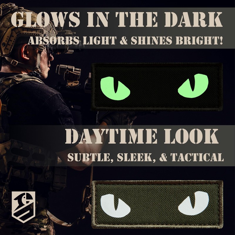 - GLOW IN THE DARK CAT EYE PATCHES enhance your gear with high-visibility, glow-in-the-dark functionality, perfect for tactical backpack, military helmet, bulletproof vest, identify teammates; increase visibility on the field, attach to any loop surface