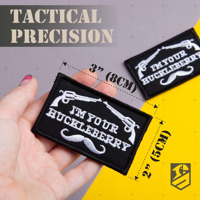- A PAIR OF I'M YOUR HUCKLEBERRY PATCHES sized at 2x3 inches (5x8 cm), these versatile funny patches are perfect for tactical backpack, military vest, or tactical helmet; ideal for adding personality to your army gear or as airsoft patches