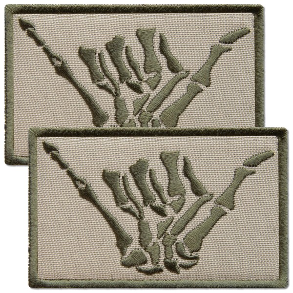 Bluyellow 2Pcs Subdued Shaka Hand Patch, Embroidered Skeleton Hand Shaka Tactical Patches for Military Backpack, Tactical Vest, Military Helmet, Dog Vest Harness, Hook and Loop Aloha, Surf Patch, 2x3