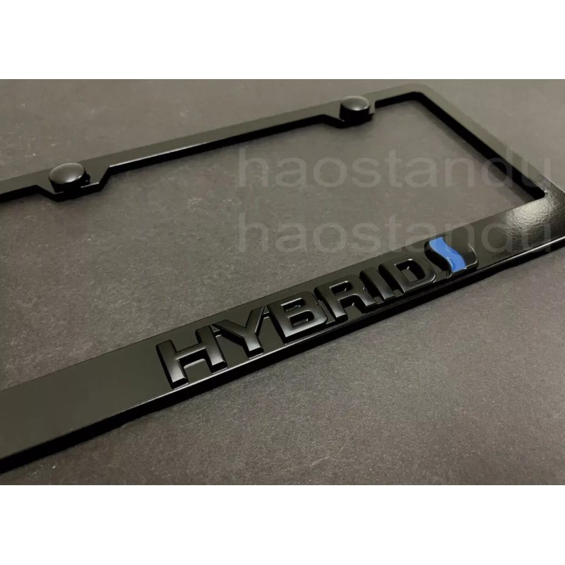 1x Black HYBRID 3D Emblem BLACK Stainless License Plate Frame RUST FREE+S.Caps.