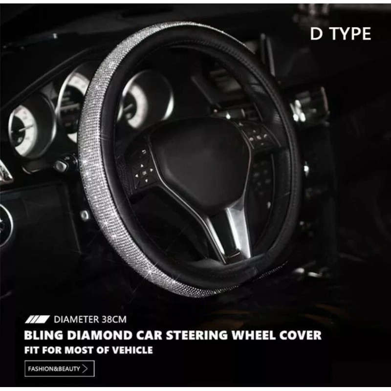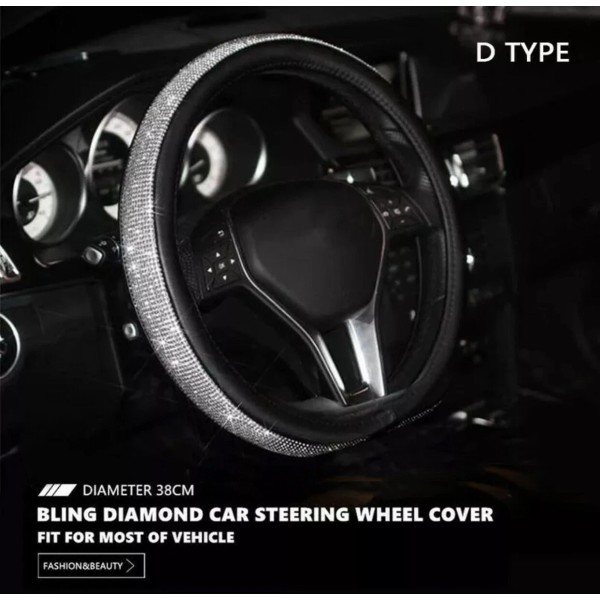 1x 38cm Bling Rhinestone Leather D Type Crystal Car Steering Wheel Cover