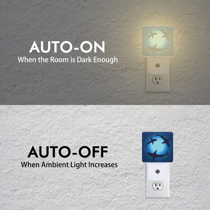 BLYKVGHQ Ocean Floating Sharks Night Light,Plug into Wall with Dusk to Dawn Light Sensors,LED Nightlights for Bedroom,Bathroom,Kitchen,Hallway,Room Decor for Boys Girls Women Men