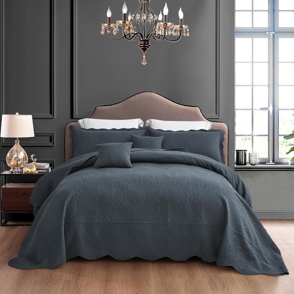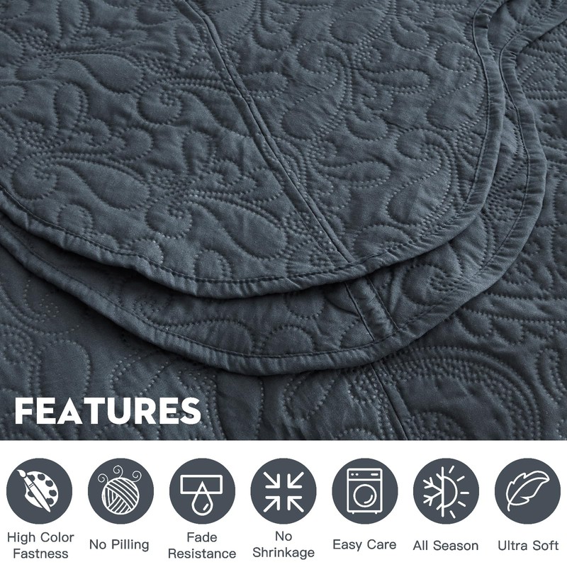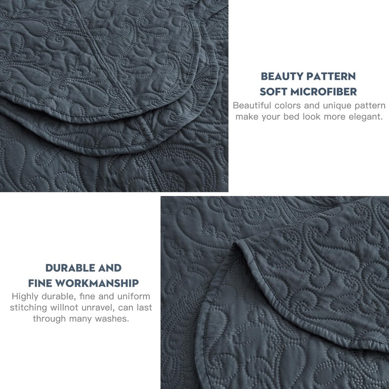 • PERFECT SEASON DECOR - Gorgeous & Elegant Paisley Pattern with beautiful scallop edge brings luxurious and classy look to your bedroom decor, Reversible with the same pattern and color on both sides. It is a good choice to decorate and enhance the master or guest room with this stylish bedspread set.