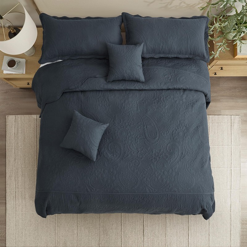 Blythease Oversized King Bedspread, Ultrasonic Lightweight Bedding Cover, Paisley Pattern, Reversible, 5 Piece, 100% Microfiber, Polar Night