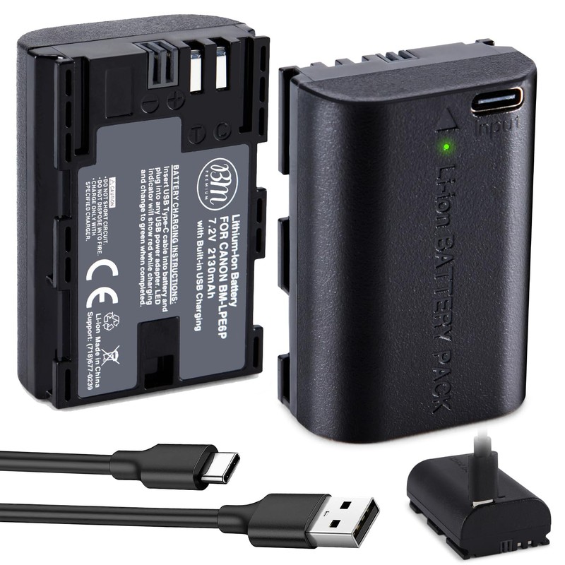 BM Premium Qty 1 LP-E6P Batteries with Built-in USB-C Charging port