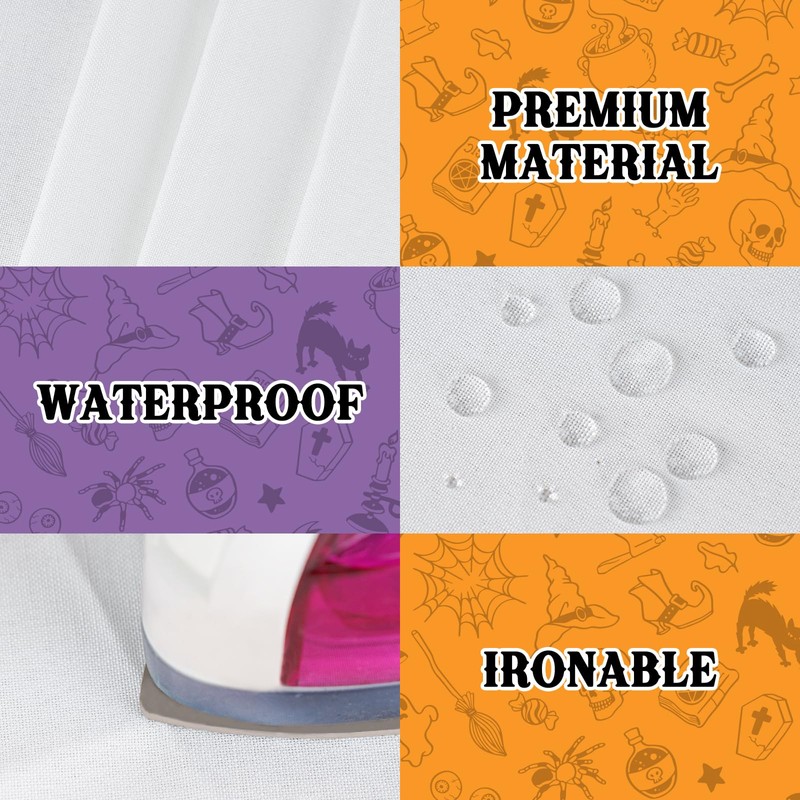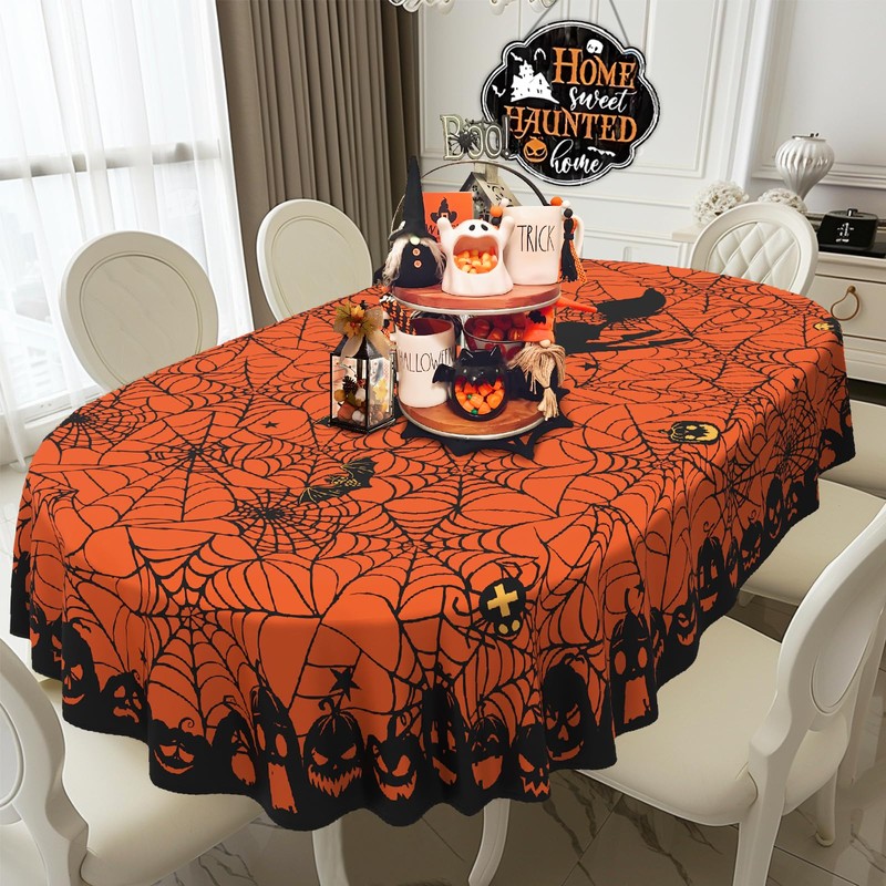 - Premium Reusable Fabric: Our oval halloween tablecloth is made of 100% high-quality polyester fabric, which can be washed many times for repeated long-lasting use, protecting your table from damage and dirt.