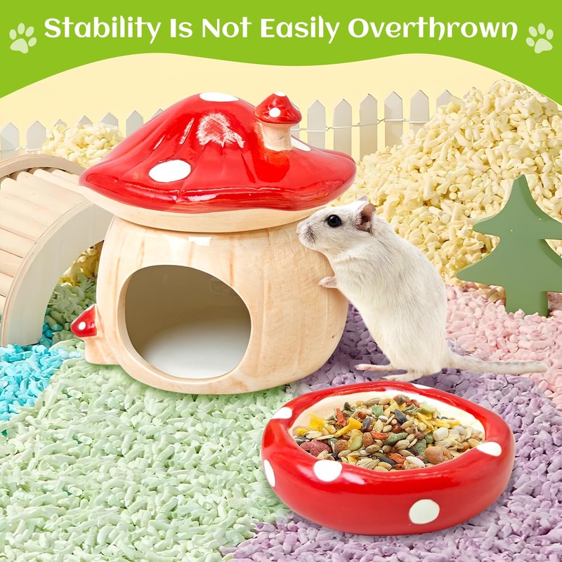 - Mushroom Design: BNOSDM ceramic mushroom hideout is designed with mushrooms as the theme, hamster ceramic house is cute and colorful, and can also decorate the habitat to add fun to the life of pets