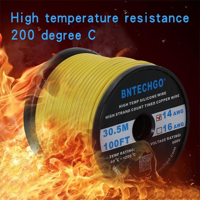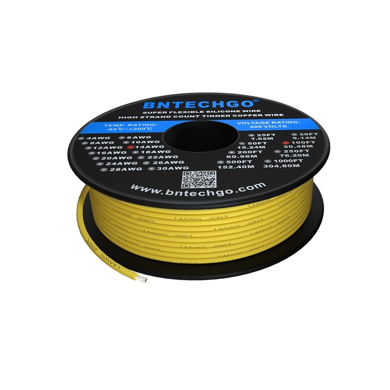 BNTECHGO 14 Gauge Silicone Wire Spool 100 ft Yellow Flexible 14 AWG Stranded Tinned Copper Wire