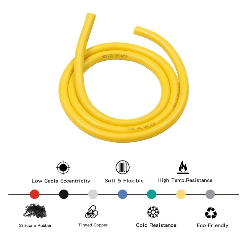 - 14 gauge silicone wire spool: Yellow total 100 feet.