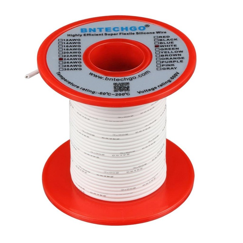 BNTECHGO 24 Gauge Silicone Wire Spool 100 ft White Flexible 24 AWG Stranded Tinned Copper Wire