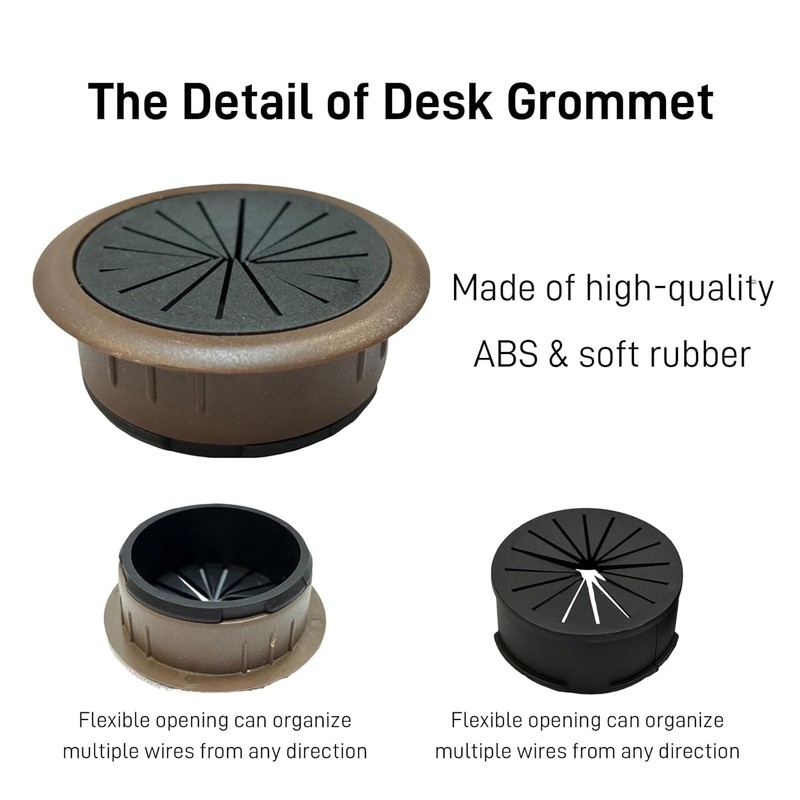 - Flexible Desk Cord Hole Cover: With upgraded petal-shaped flexible cover design, the desk cord hole cover can organize multiple cables from any direction. And you also can organize more wires and cables without the lid.