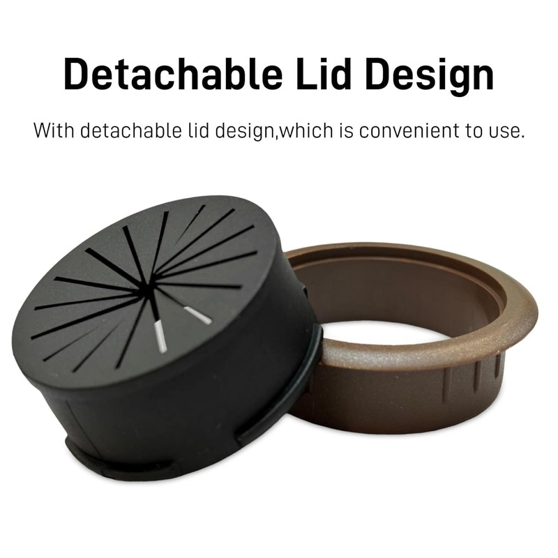 - Easy to Install and Use: Fits desk hole 2 inches(50mm). Remove the lid first, place the main part of the desk hole cover directly into the hole after drilling to add the wires and cables, and then close the lid.
