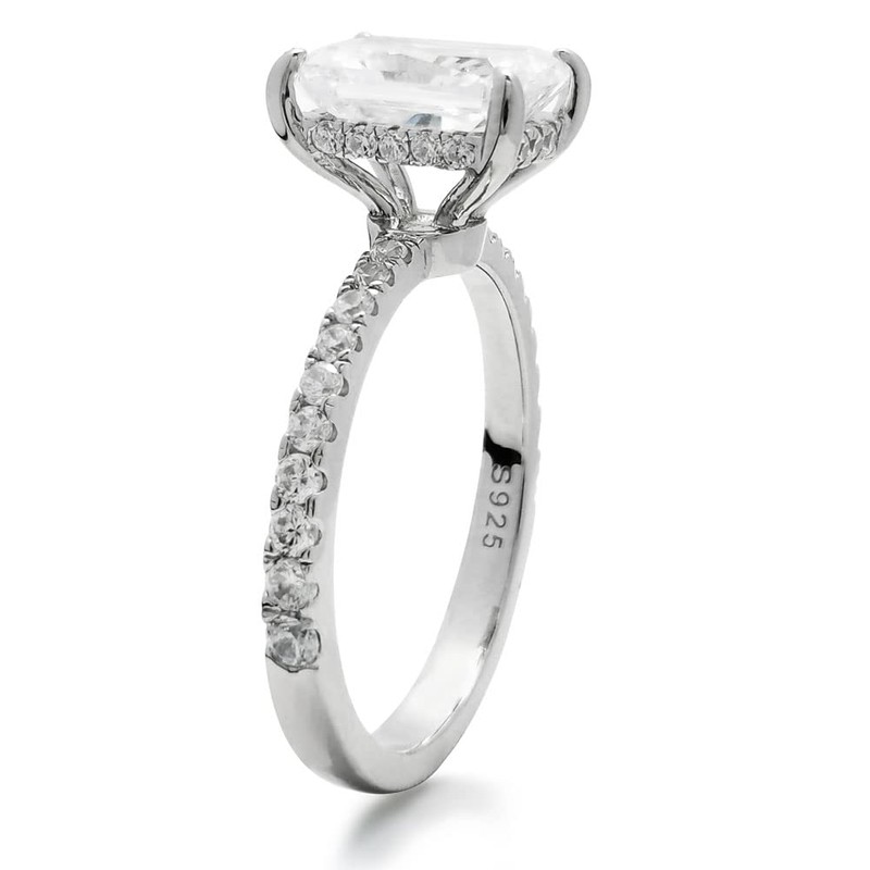 - Este anillo de compromiso alargado de corte radiante para mujer está hecho de plata de ley 925, chapado en platino añadido para mejorar el brillo y la durabilidad. Sin níquel, seguro para usuarios con alergias al níquel.