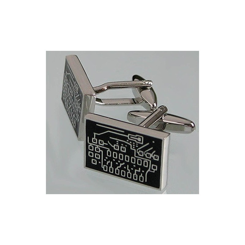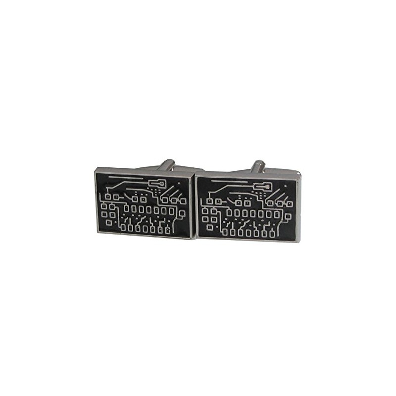 Board Circuit Faux Black Silver Rectangle Cuff Links With Silver Box
