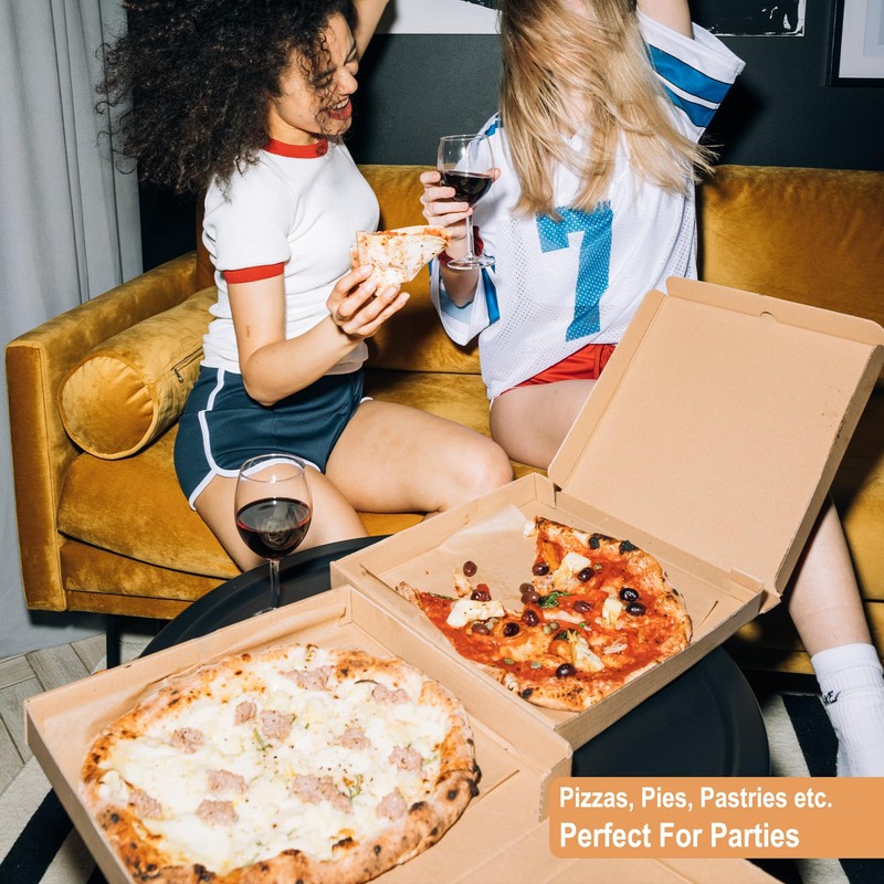 - Enhance Your Pizza Night - Made with excellent workmanship, our durable corrugated cardboard ensures your pizza stays fresh and intact. Say goodbye to torn or bent boxes and indulge in the perfect slice every time.