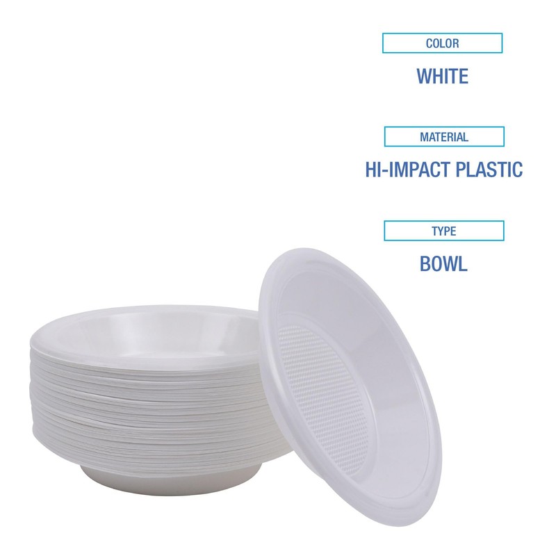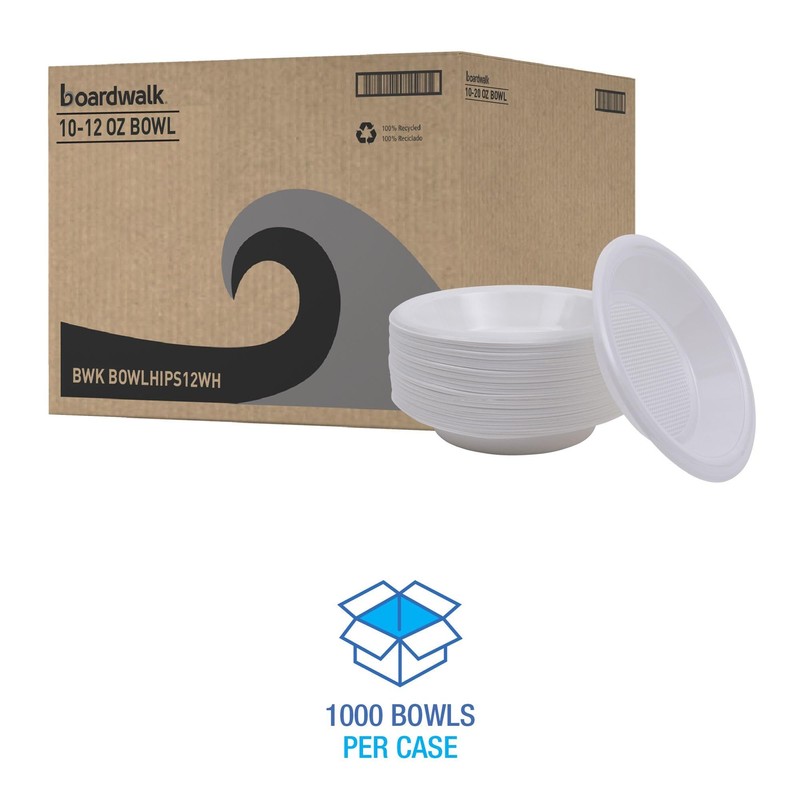Boardwalk BOWLHIPS12WH Hi-Impact Plastic Dinnerware, Bowl, 10-12 oz, White, 1000/Carton