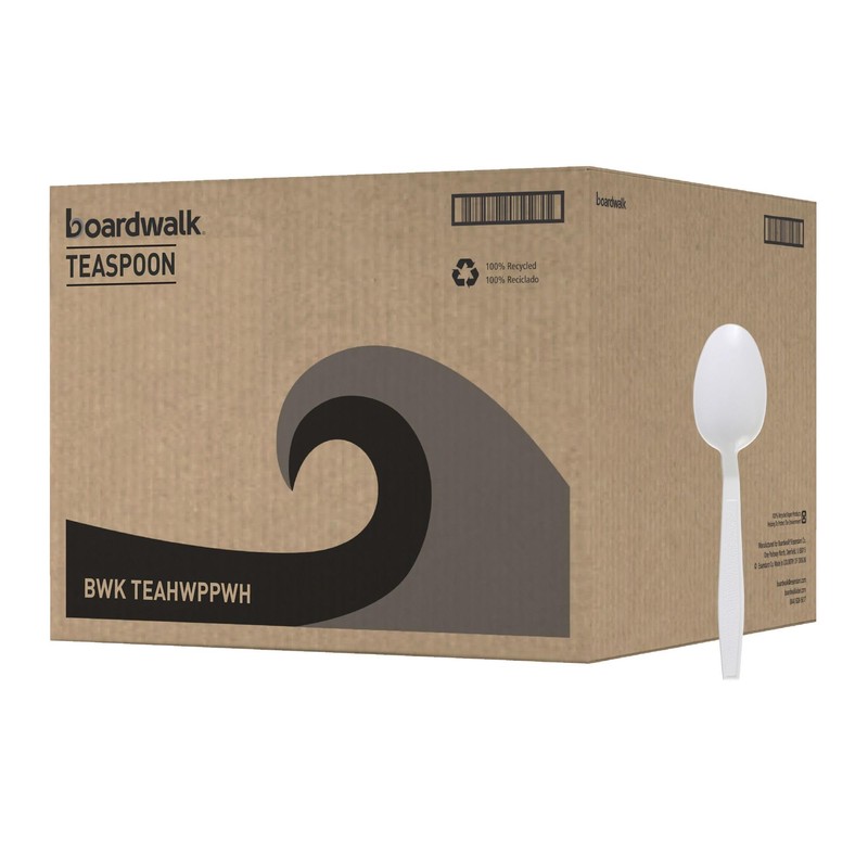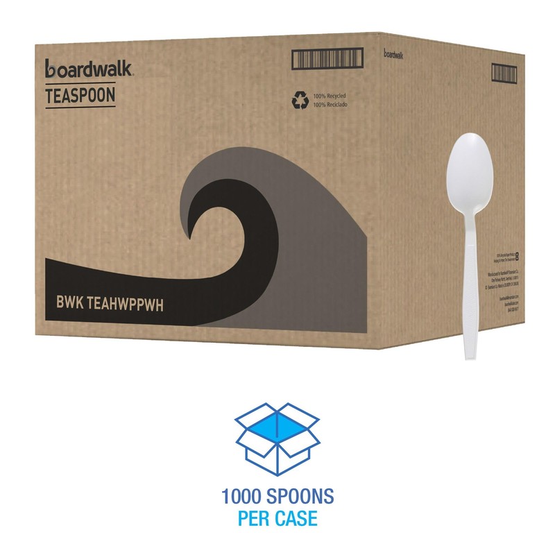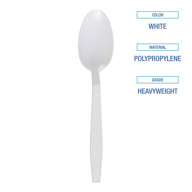 Boardwalk Heavyweight Polypropylene Cutlery, Teaspoon, White, 1000/Carton