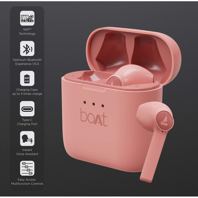 BoAt Audífonos Inalámbricos AIRDOPES 131 in-Ear TWS 60horas (Cereza)
