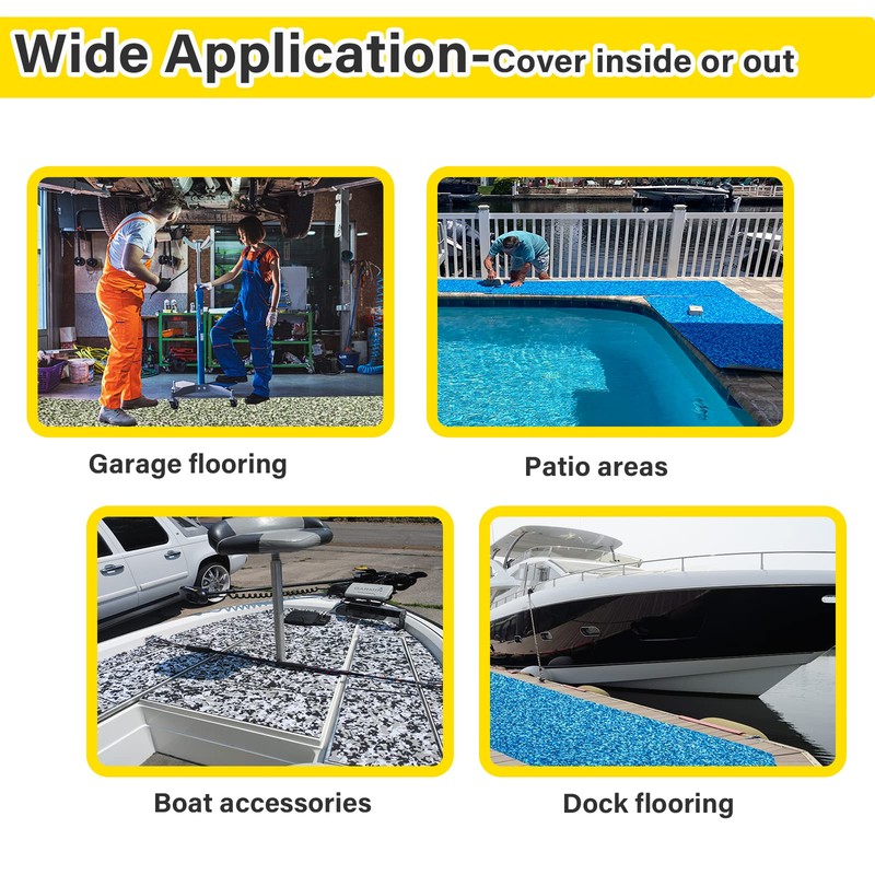 - Non-slip Boat Flooring: The embossed texture on the surface will add friction. The durable padding of this deck boat flooring provides a nice grip under the feet, not only avoiding sliding but also keeping a soft feeling even when you walk on your bare feet. Our non-absorbent, closed-cell technology prevents liquids from penetrating the surface, making stain removal easy and fast