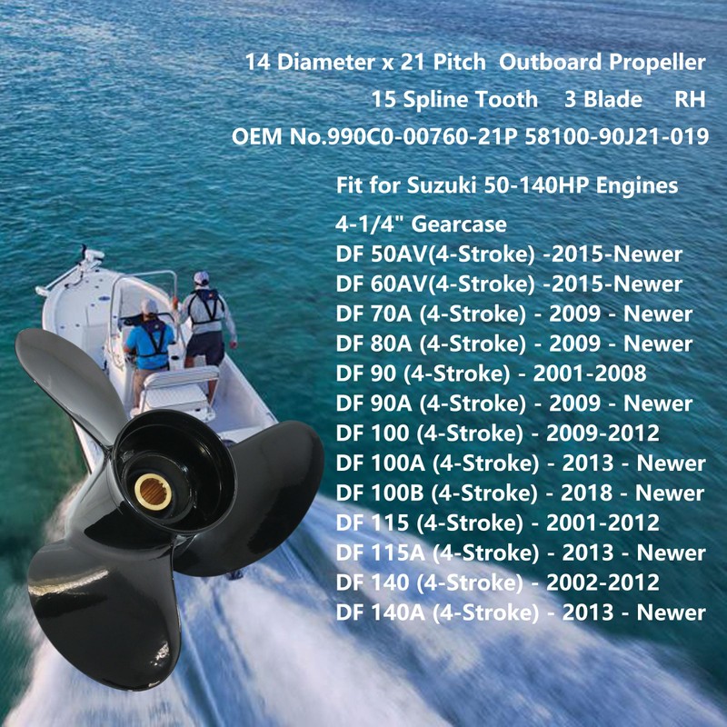 - Compatibility: 14 x 21 pitch boat propeller compatible with Suzuki DF 50AV 60AV 70A 80A 90 90A 100 100A 100B 115 115A 140A 140 HP engines.