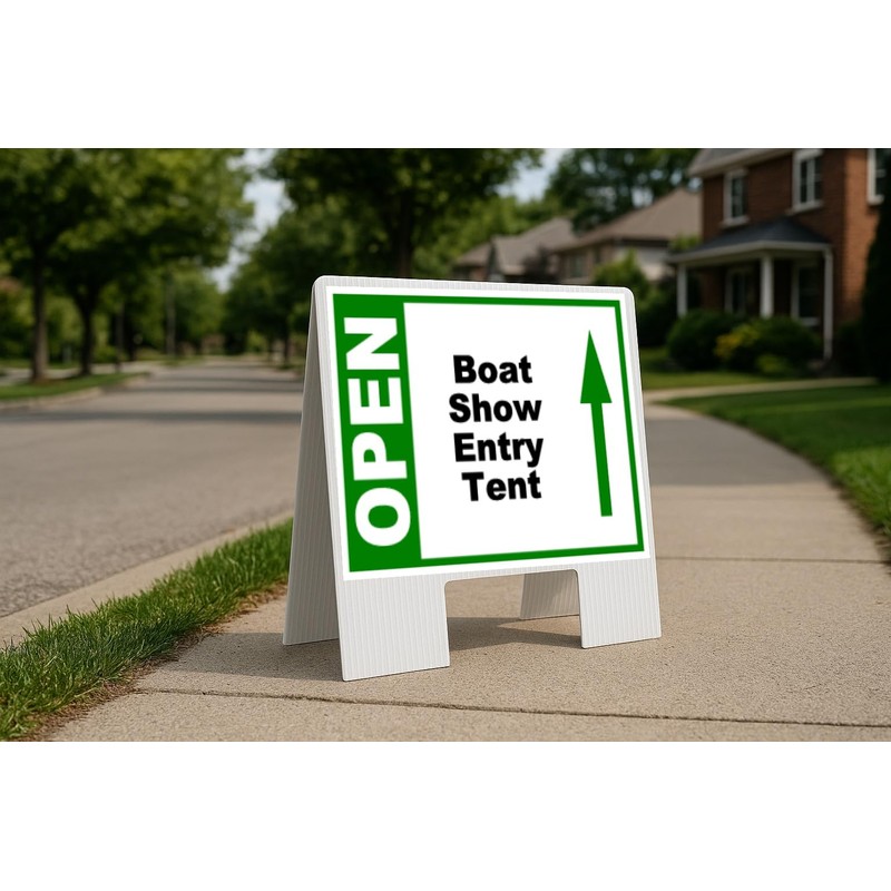 Boat Show Entry Tent Open Up Green Folding Coroplast A-Frame with Double-Sided 23in x23in