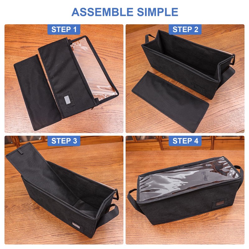 BOATISLE CD Case Holder with Handles and Clear Lid, 4-Pack Black – CD Storage Box with Label Slots, Portable Organizer for Media Collection and Efficient Storage