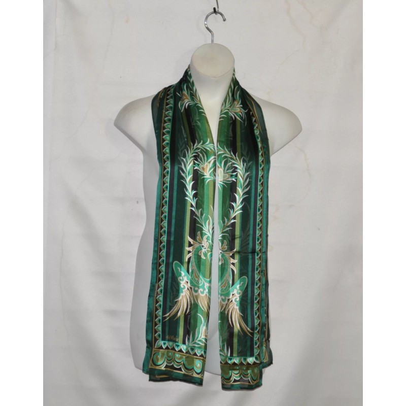 Bob Mackie Wearable Art Phoenix Print Oblong Silk Scarf W/Gift Box-Green Multi