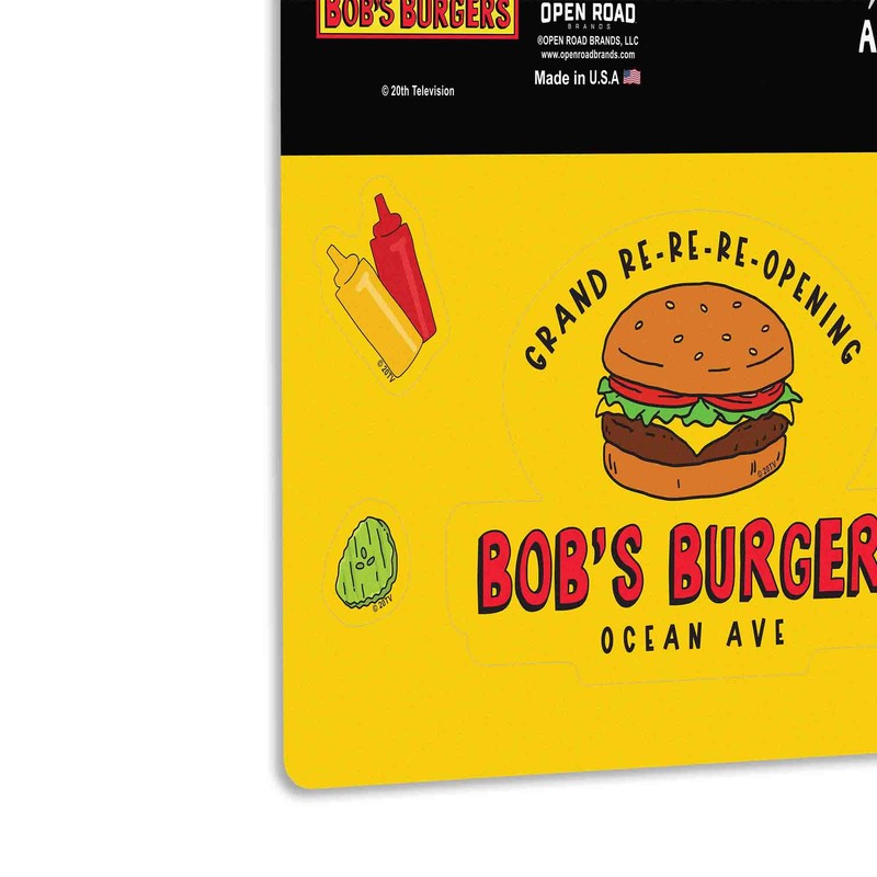 - Disney Official product: Bob's Burgers fans can now take their love for the show on the road with this vinyl decal set. Featuring a fun design, it’s perfect for your car window or bumper. The vibrant colors and quirky humor bring the beloved animated series to life. Apply it to any smooth surface to share your fandom wherever you go.