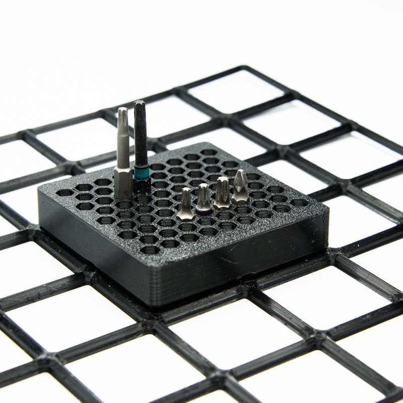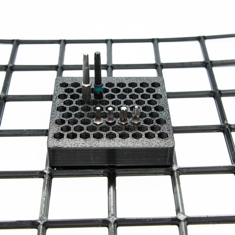 BOB'S TOOL COMPANY | 1/4" Hex Driver Bit Organizer | 43 Hex Slots | 2X2 | 84mm x 84mm | 42mm Gridfinity Alignment Grid Compatible (Black, 2X2)