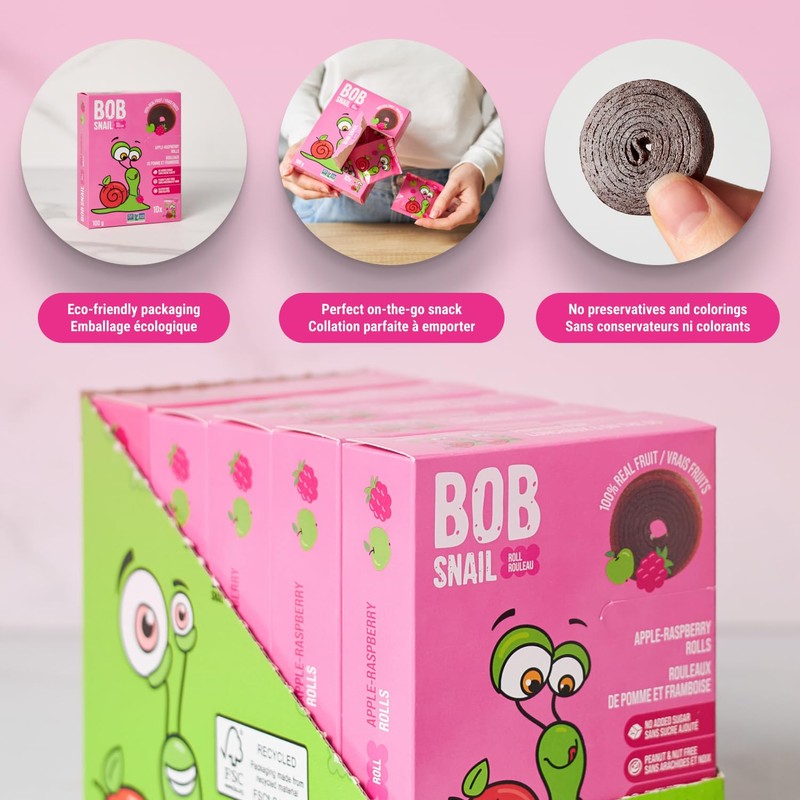 Bob Snail Fruit Rolls Apple Raspberry 5x100g (Pack of 5)