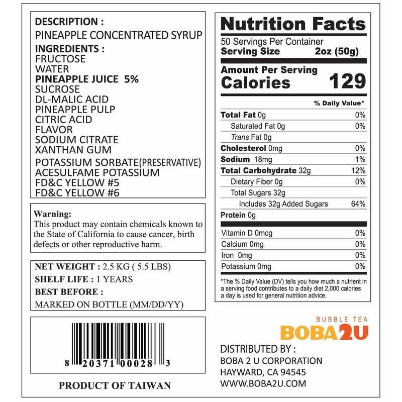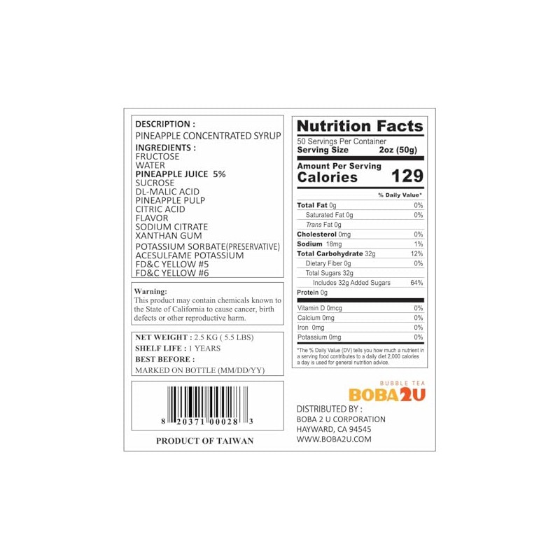BOBA2U CONCENTRATED SYRUP 5.5 LBS (Pineapple)