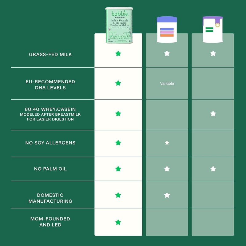 - MADE WITH NOURISHING INGREDIENTS: Bobbie formula will never contain palm oil, corn syrup, fillers, or unnecessary additives.
