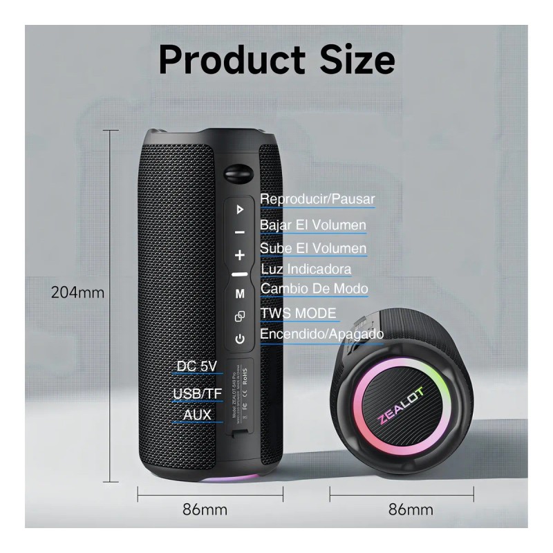 Bocina Bluetooth FocoMyLord S49 PRO 30W Portátil Impermeable con Luces RGB