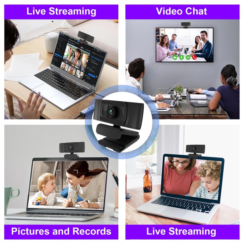 - Webcam with Microphone: Equipped with built-in dual stereo omnidirectional microphones, this webcam captures clear audio within 20 feet while eliminating background noise, making it ideal for professional calls and online meetings. Enjoy hassle-free communication with our reliable webcam with microphone.