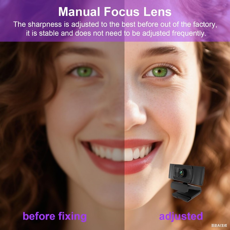 - Wide Angle Webcam Design: The manual focus feature allows you to capture a wider field of view, accommodating various live streaming scenes and conference room settings. Our wide angle webcam is designed to deliver quality performance whether you're gaming, teaching, or hosting webinars.