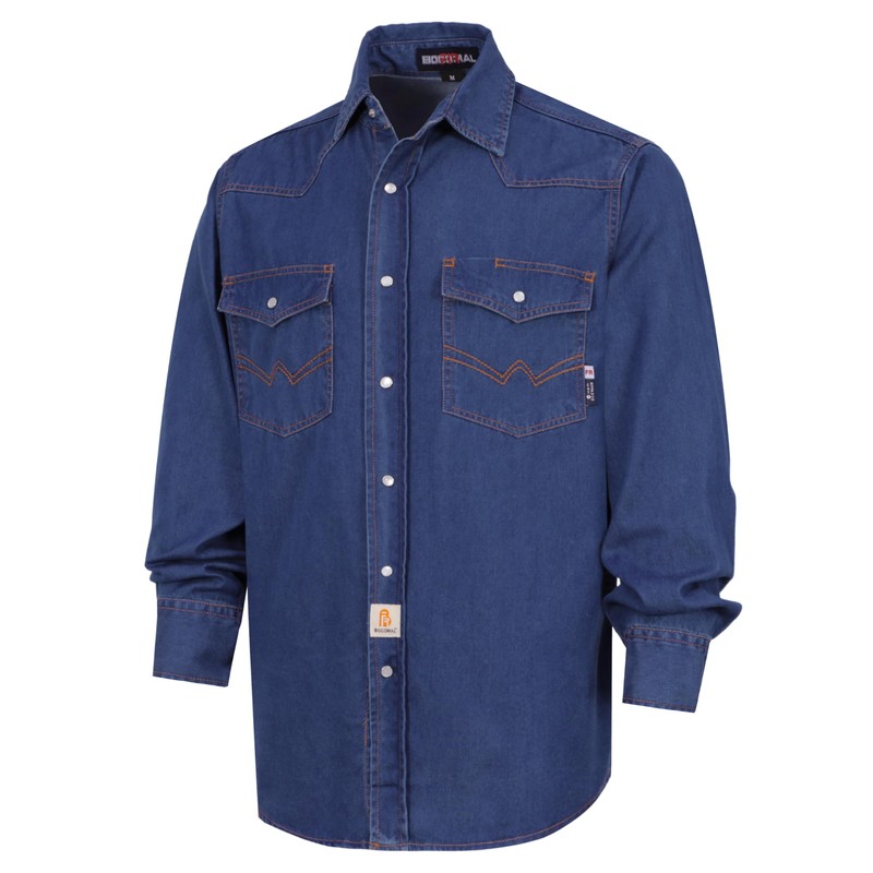 This rugged lightweight denim cowboy shirt blends comfort with exceptional durability. Crafted from 6.5oz 100% cotton fire-resistant denim, it's engineered for effortless wear in demanding work environments. Featuring a classic long-sleeve button-down design with secure metal snap buttons, this shirt offers a polished yet practical look that works as hard as you do. Perfect for both job sites and weekend adventures, it delivers outstanding performance and style.