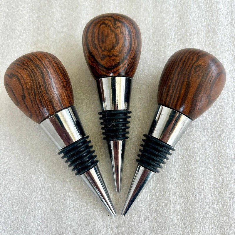 These Bocote Wood wine stoppers are the perfect wedding favors and great gifts for anyone in the wedding party. Each wine stopper is made with BOCOTE Wood and seals wine perfectly for short-term storage. Our wine stopper fit Wine and Olive Oil bottles. Bocote wood has a yellowish brown body with dramatic dark brown to almost black stripes. Who's if for - ► Gift for wine lovers ► Wedding party gift ► Corporate gifts ► Holiday office gifts ► Christmas gift ► Hostess gift ► Use in holiday gift baskets
