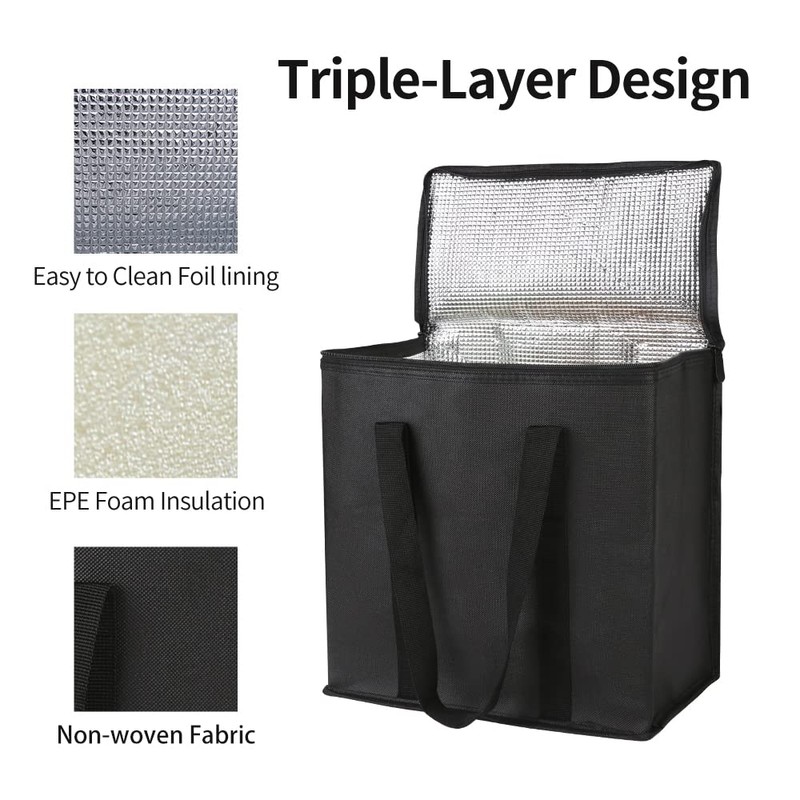- 【FOOD WARM】:The reusable storage bags work great for food delivery for Uber Eats. They are inaulated tote bag kept our food nice and cool. Excellent product for delivering Hot Food! Keeping food cold/frozen during warmer weather.They are also great to use when you travel to family gatherings with pies, pizza or salads. Large food carrying bags, xl thermal bags for grocery carrier