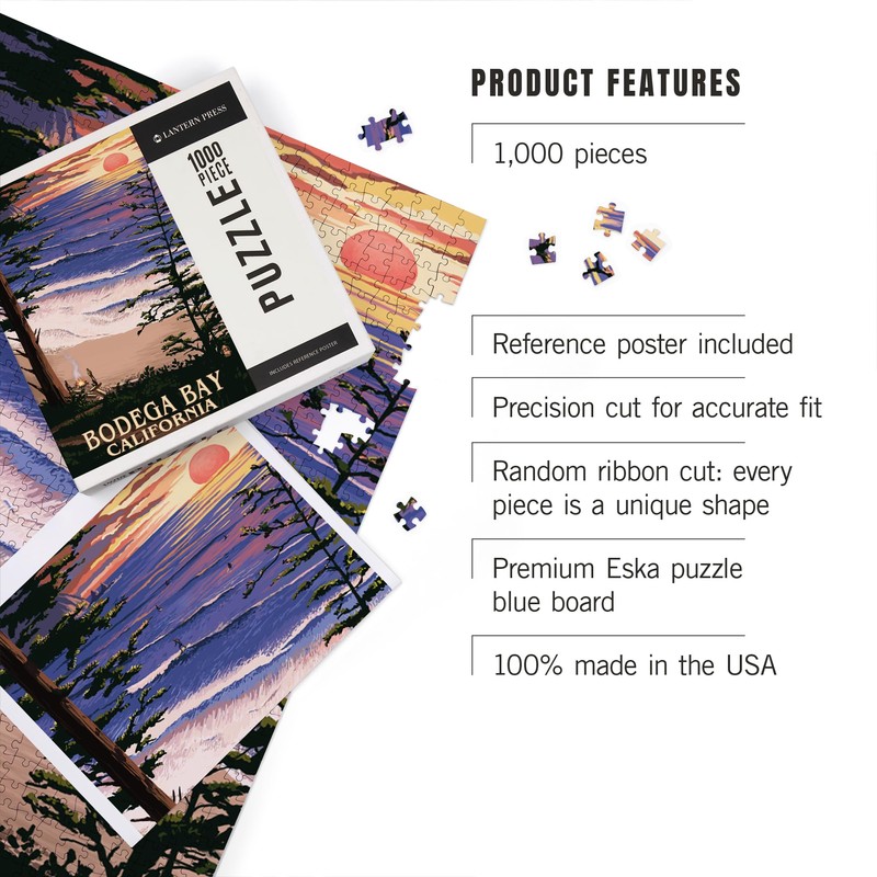 This 1,000 piece puzzle from Lantern Press boasts sharp detail and vivid original imagery of Bodega Bay, California, Sunset and Beach (1000 Piece Puzzle, Challenging Jigsaw Puzzle for Adults, Made in USA).