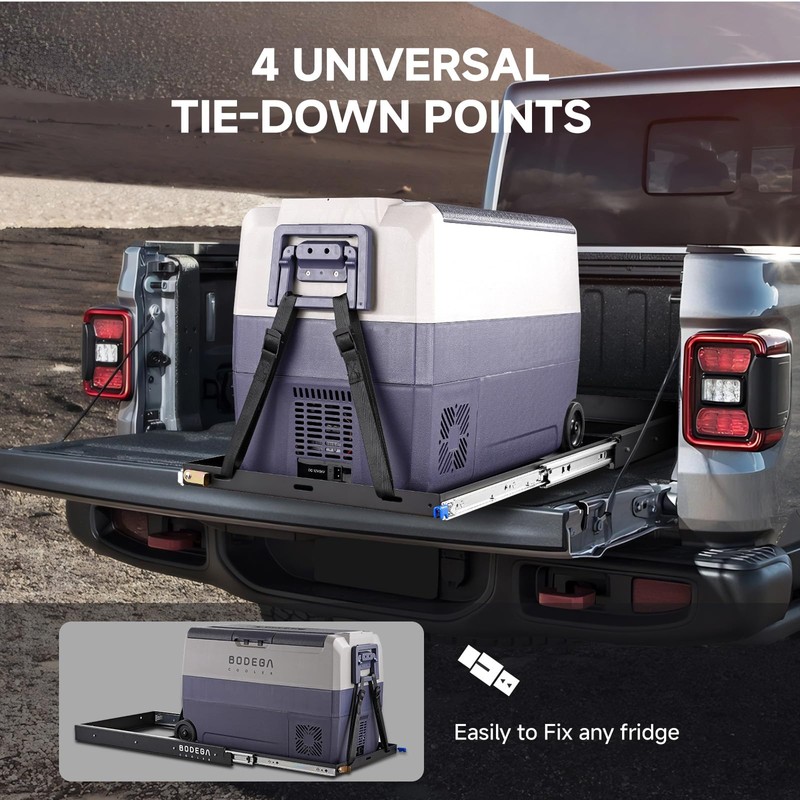 BODEGACOOLER Car Fridge Slide, Inner 29.4 x 17.2in, Vehicle Refriderator Slider with 4 Buckle Straps, Max 220 LBS/100Kg