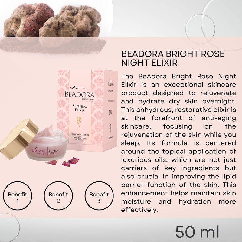 BODI BEAUTY BeAdora Bright Rose Sleeping Elixir Night Cream with Rose Oil, Macadamia, Moringa and White Truffle, Night Care & Anti-Ageing Face Care, Face Cream for Dry Skin, 50 ml
