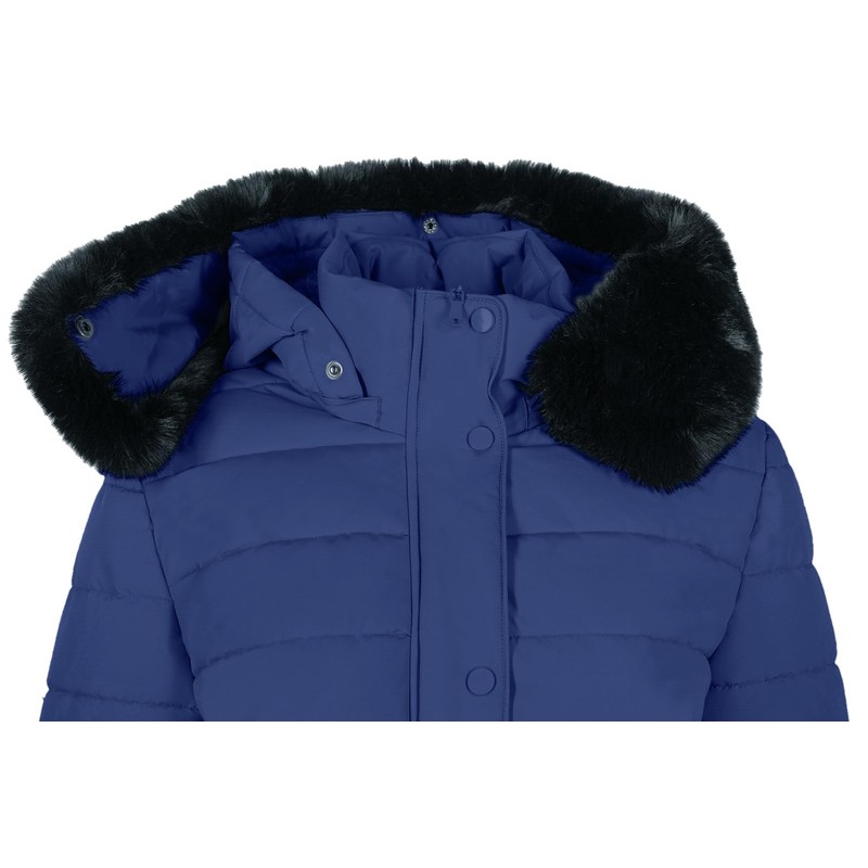 BodiLove Women's Fur Hooded Utility Jacket with Zipper and Fannel Lining Navy XL