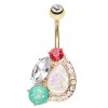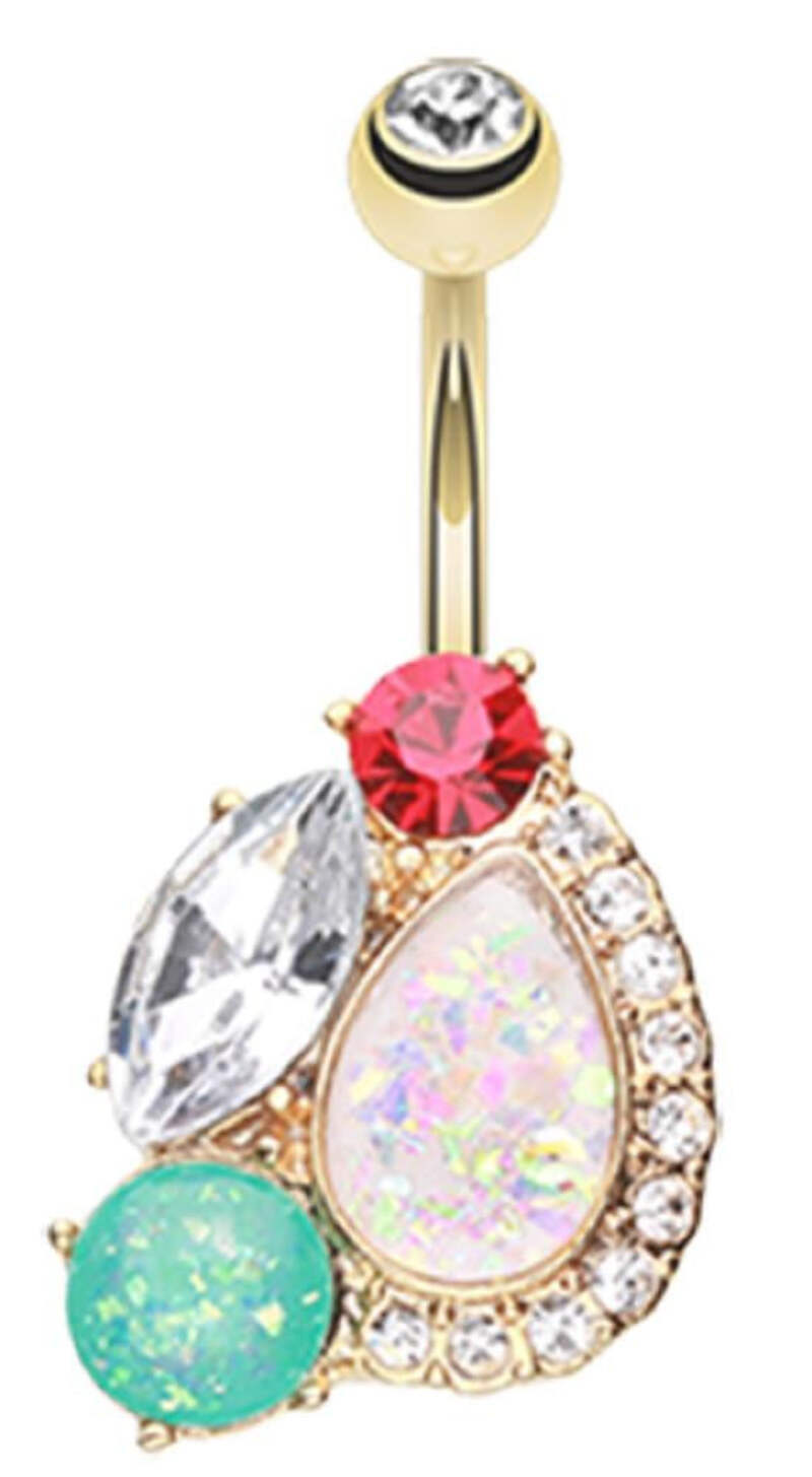 Belly Button Ring Navel Golden Sparkle Opal Teardrop Medley 14g